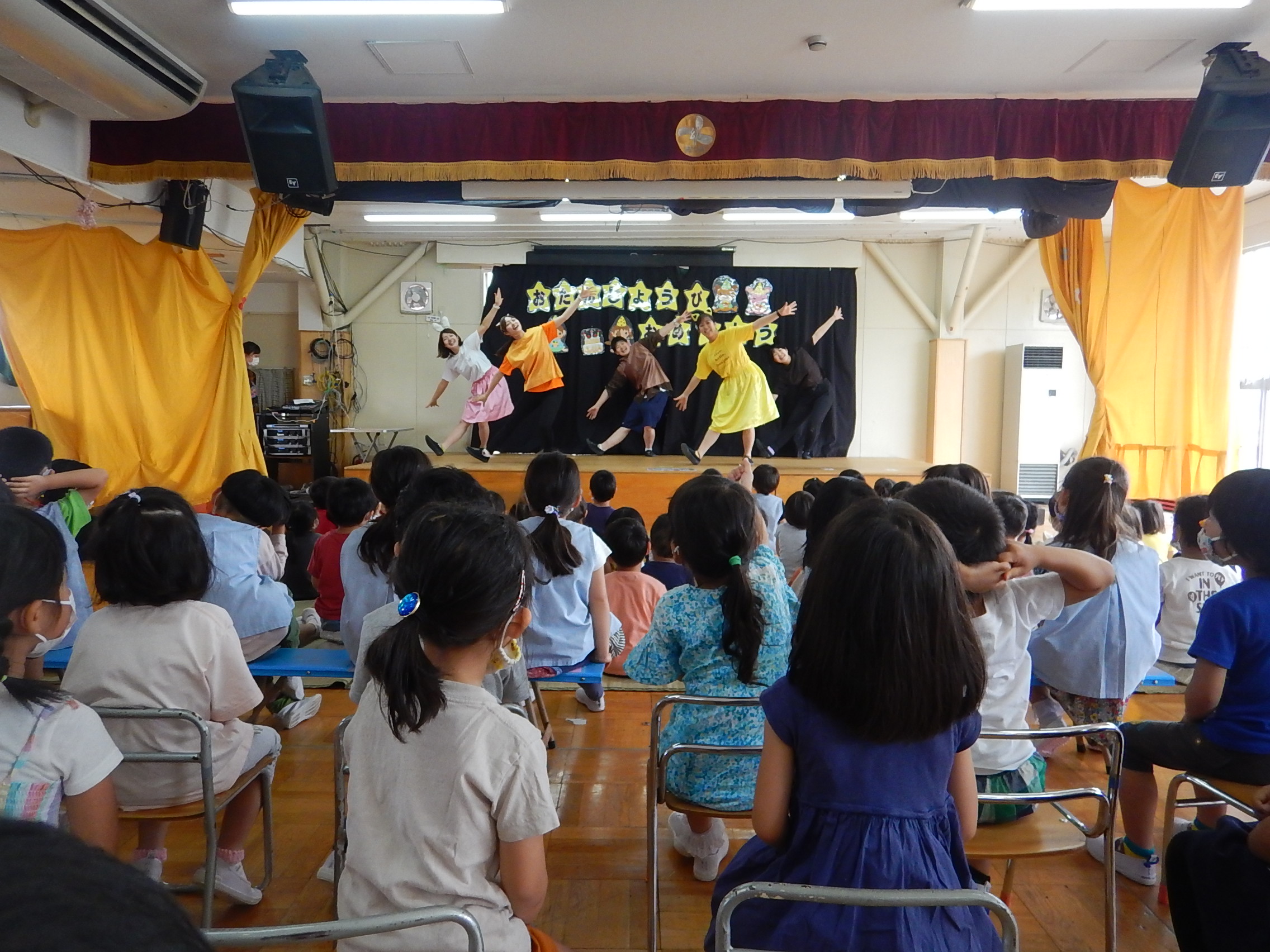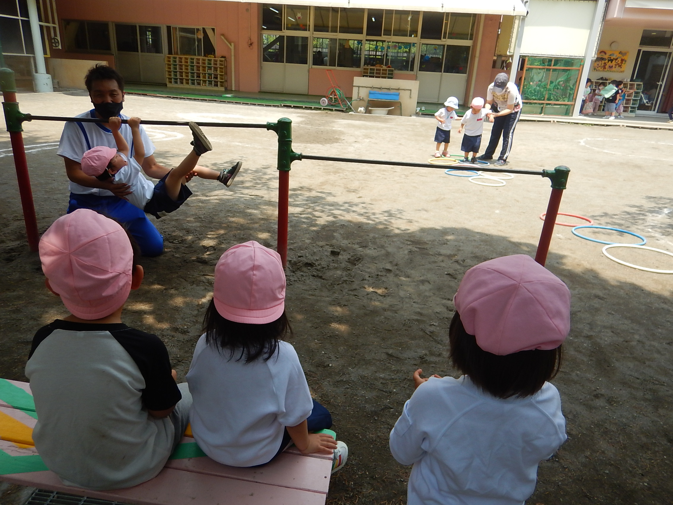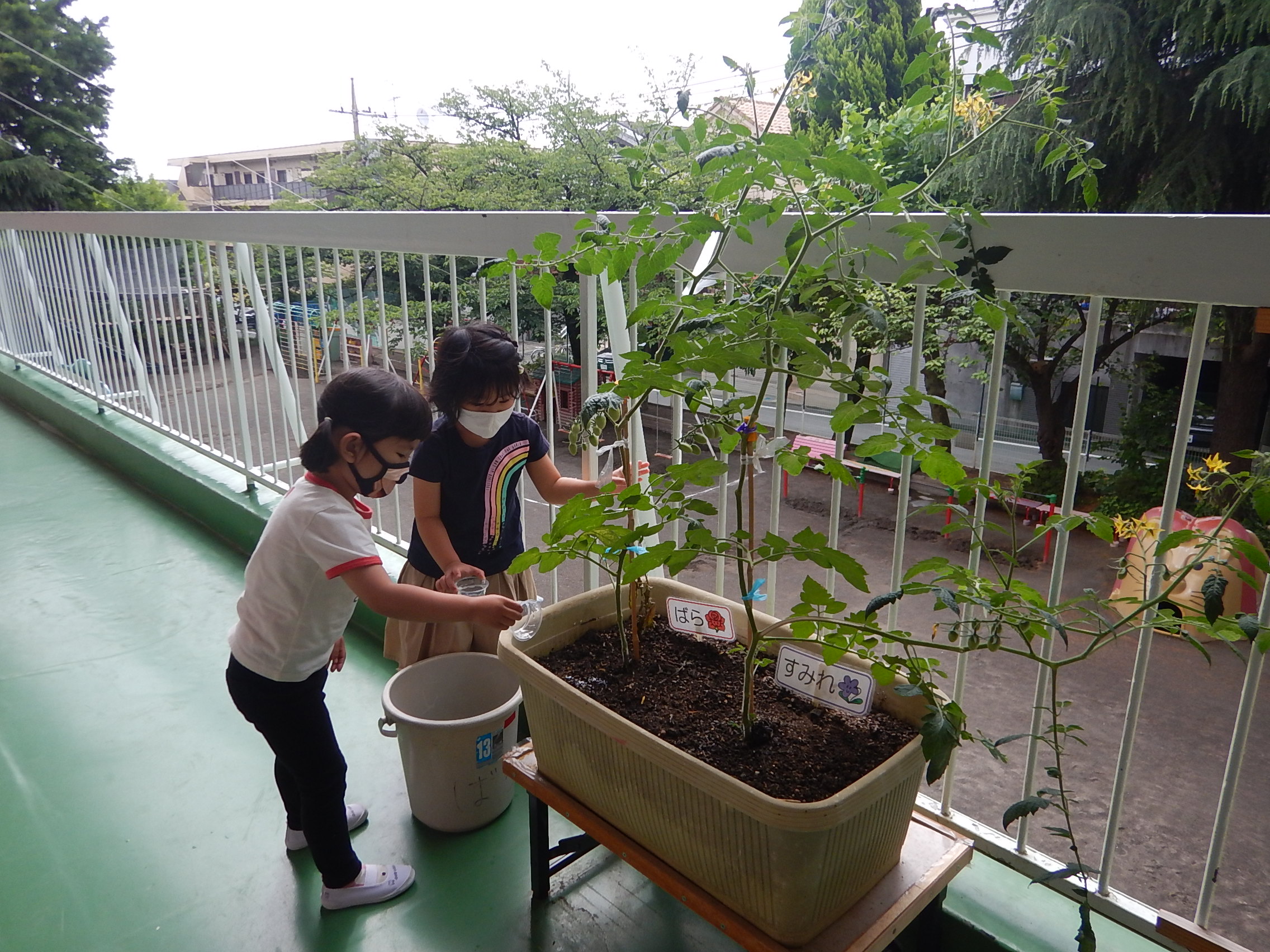 2021.06.17 おおきくな~れ! 年中組のテラスでミニトマトとひまわりを育てています! 「まだまめみたいだね~」「つちにみずあげたほうがいいよね!」と大きくなることを楽しみにしているようです! 収穫、開花はいつになるでしょうか…!? 2021.06.16 年長 屋上で水遊び 梅雨入りしましたが… 晴れ間に、屋上で水遊びをしました!年長さんはダイナミックに遊び、水の気持ち良さを感じているようでした! 2021.06.15 6月 お誕生日会 昨日は6月生まれのお誕生日会をしました!ドキドキしながらも、お友達に祝われ、嬉しそうでした! お楽しみは先生達による劇、”どうぞのいす”でした! 「ねんしょうのとき、やったね」「え~!どんぐりがくりになっちゃったの!?」と興味深々に見ていました! 2021.06.14 年中 泥遊び 先週、お天気のいい日に泥遊びをしました!水や泥の気持ち良さを感じられたのではないでしょうか! 年長は屋上で水遊びを楽しみました! 2021.06.08 「たいそうふく きたよ!」 年少組は体操服に着替え、体育遊びをしました! 鉄棒にぶら下がったり、くねくね道を通ったり、ジャンプしたり、、体を動かすことを楽しみました! < 1 2 3 4 5 6 7 8 9 10 11 12 13 14 15 16 17 18 19 20 21 22 23 24 25 26 27 28 29 30 31 32 3334 35 >